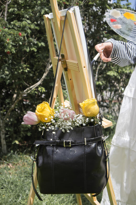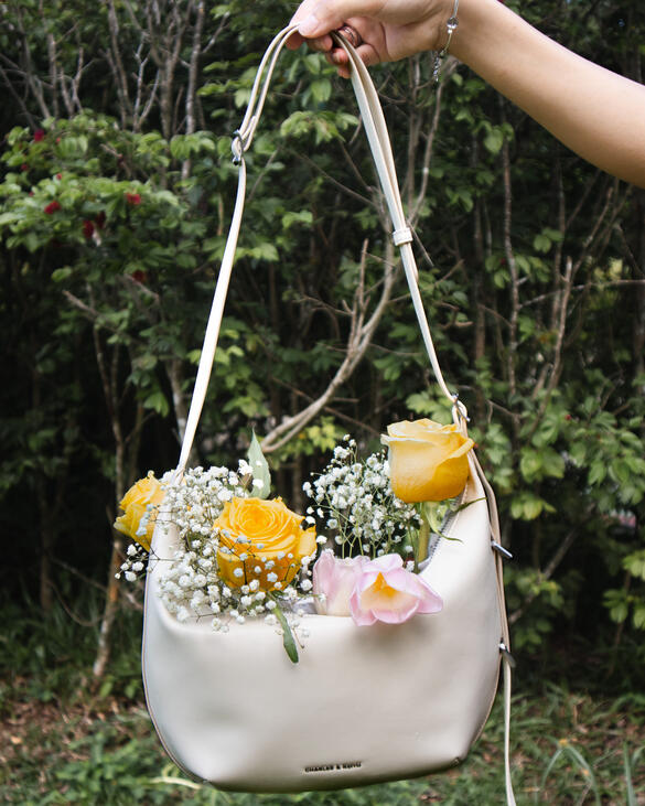 The campaign that I designed was called "The Florist's Song". It was a concept built around art and flowers.For the images, I shot outdoors in natural lighting and made use of real flowers as props. Because the products we were given were mostly white and black I chose flowers that could add some contrasting colours into the final image.